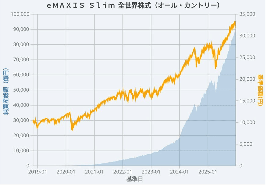 またオルカンの基準価額と純資産総額の推移をチャートで確認しましょう。